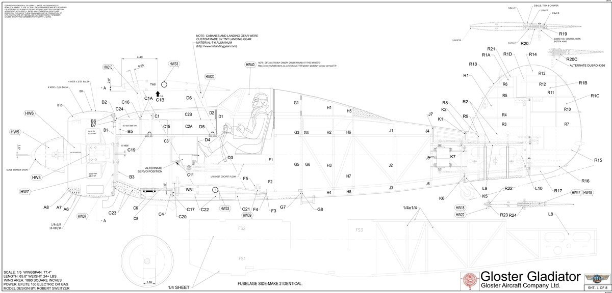 Jerry Bates plan for the Gloster Gladiator 1/5 scale