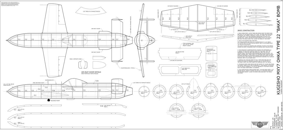 Jerry Bates plan for the Kugisho MXY7 Ohka 1/8 scale