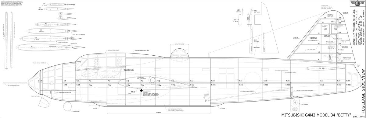 Jerry Bates plan for the Mitsubishi G4M2 Betty 1/7 scale