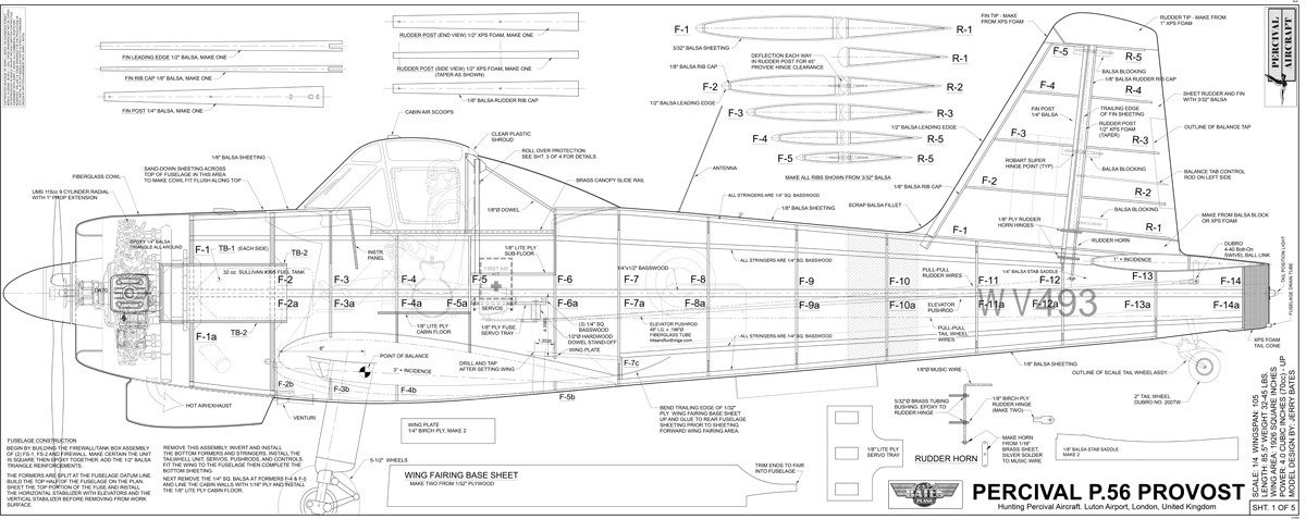 Jerry Bates plan for the Percival P.56 Provost 1/4 scale
