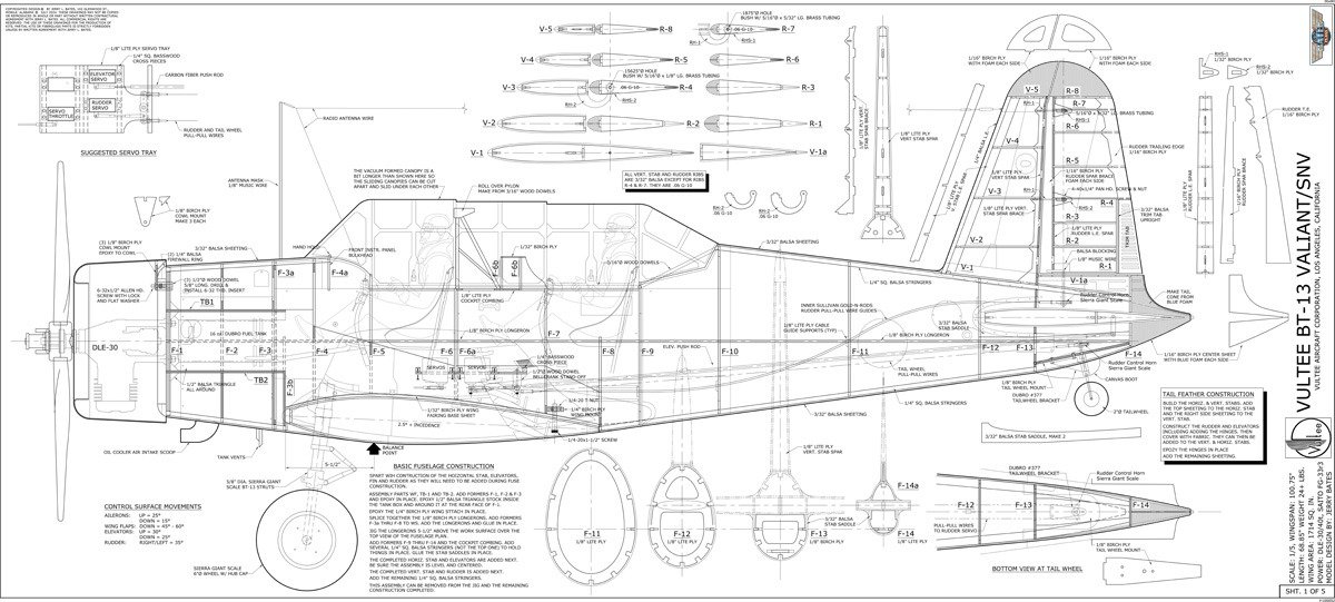 Jerry Bates plan for the Vultee BT.13 Valiant 1/5 scale